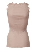 Klassisk silketop med blonder, rund halsudskæring og uden sidesømme. Pasformen på toppen er Slim fit.