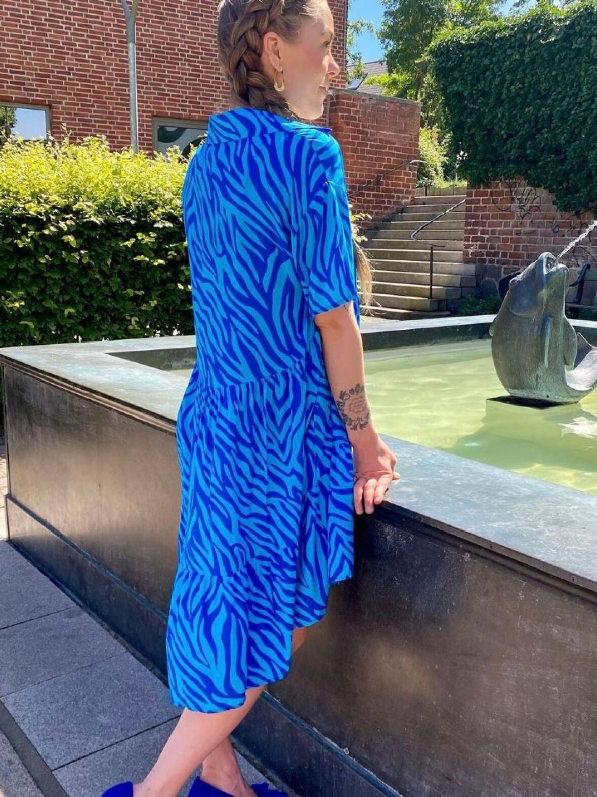 Super smuk kjole fra SOMMERSTEDT i en loose pasform. Kjolen her 2/4 ærmer og en fin krave som går ned i en V-udskæring. Style evt. kjolen med en mesh under og leggings under på de køligere dage.