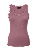 Klassisk silketop med blonder, rund halsudskæring og uden sidesømme. Pasformen på toppen er Slim fit.