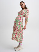 Super smuk kjole fra ICHI i et fint blomsterprint. Kjolen har en dyb V-udskæring, 2/4 ærmer og er gennemknappet. Det er ekstra stof omkring barmen, hvilket giver ekstra plads.