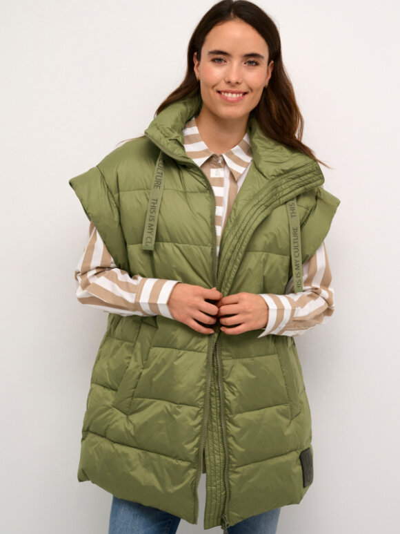 Super lækker dunvest fra Culture i en lækker oversize pasform. Vesten lukkes med lynlås.