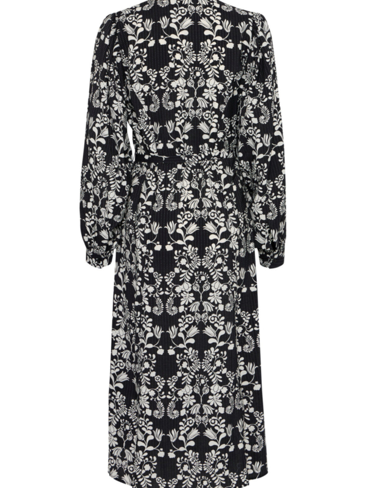 Super fin lang kjole fra ICHI med lange ballonærmer. Kjolen har en løs pasform med elastik i taljen.