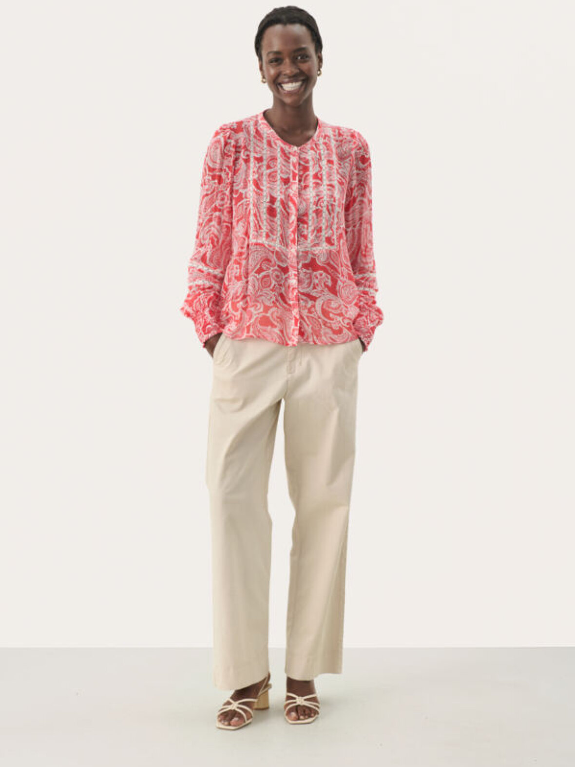 Super fed skjorte fra Part Two. Skjorten er har en fin kinakrave og smock ved ærmerne.