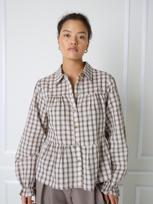 Super fed skjorte fra ICHI. Skjorten har en løs pasform i et A-snit og derudover er den gennemknappet.