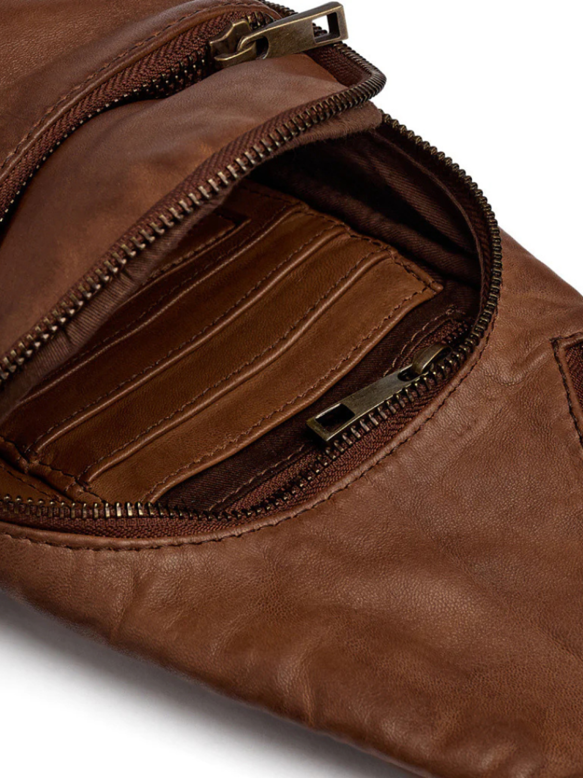 Denne bumbag er den perfekte kombination af rå attitude og praktisk design – lavet i en blød og lækker skindkvalitet, der kun bliver flottere med tiden. .