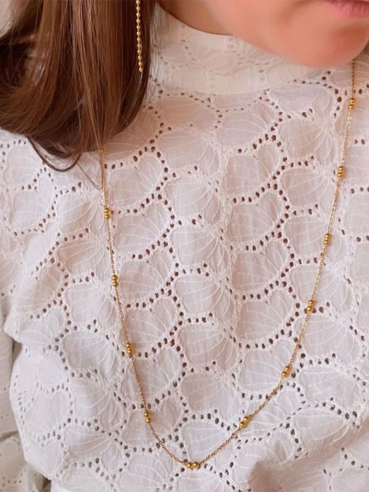 Lang halskæde fra Frk. Wolff Jewelry. Denne halskæde har en PVD belægning, som gør det vandfast og derfor tåler vand, sved og parfume. Halskæden falmer ikke og er allergivenligt.