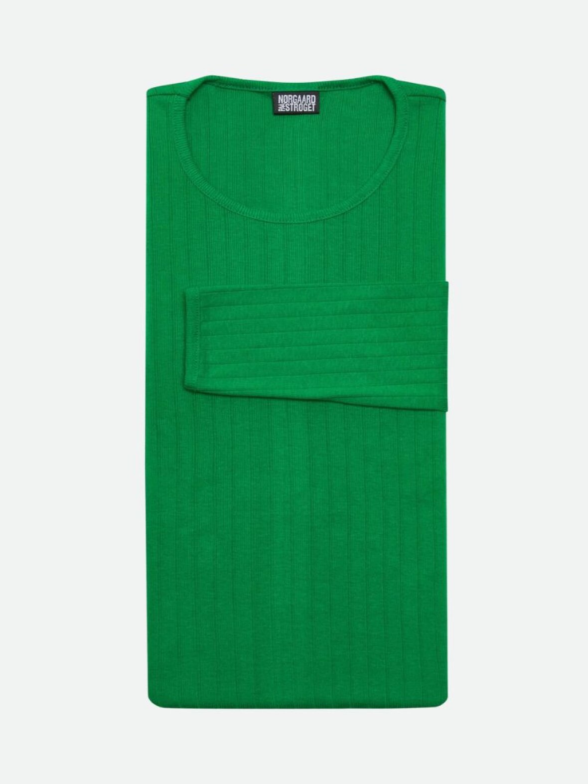 Den populære 101 klassiske basic bluse i grøn fra Mads Nørgaard. Blusen er med lange ærmer og One size.