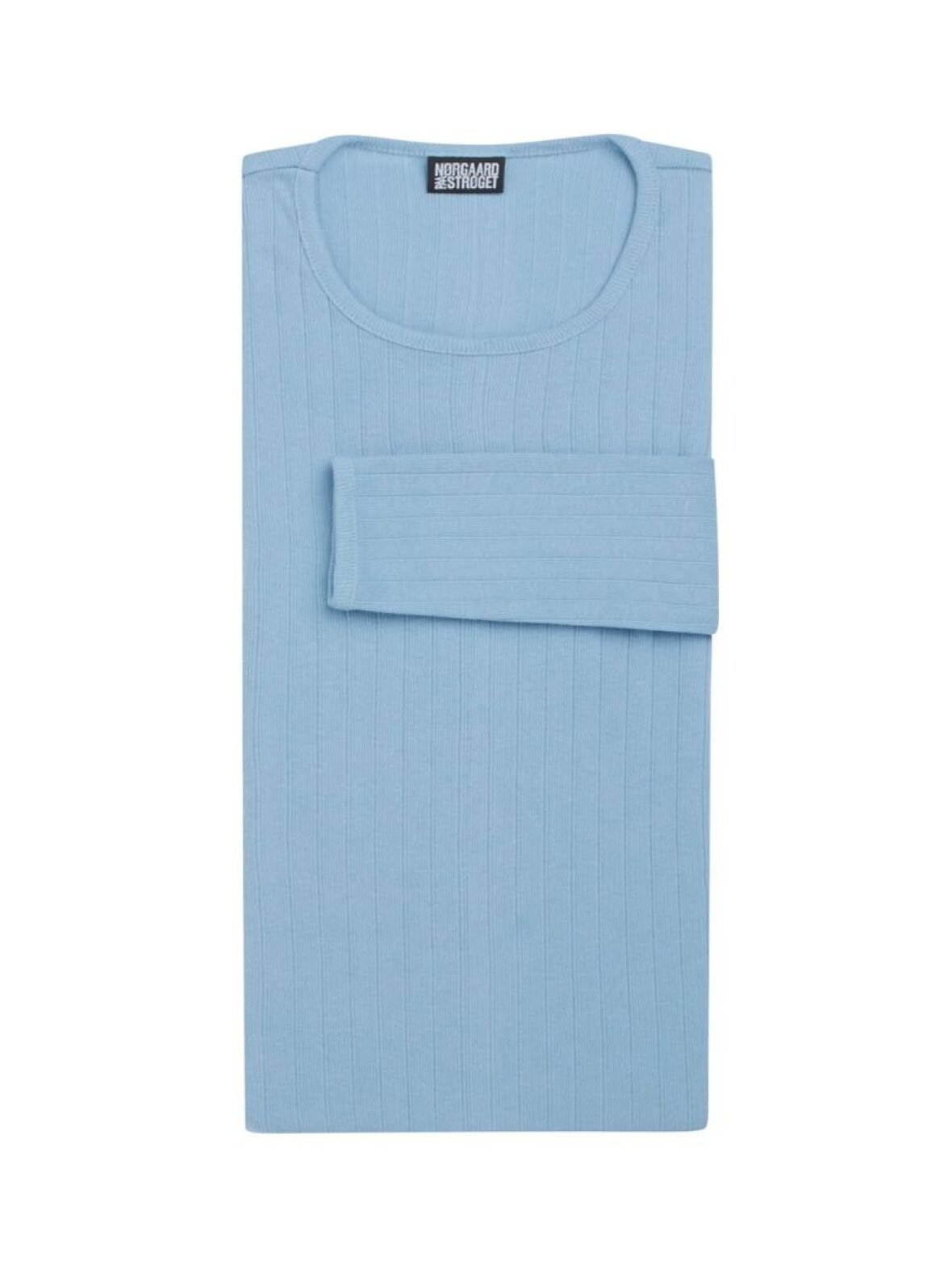 Den populære 101 klassiske basic bluse fra Mads Nørgaard med lange ærmer i lyseblå. Blusen er One size.