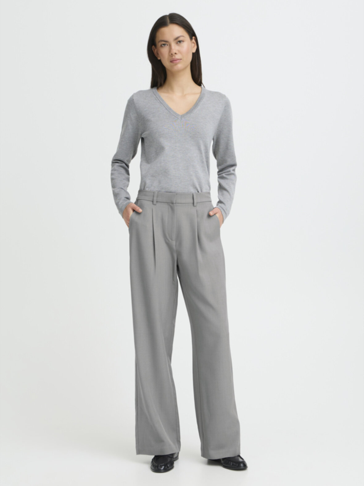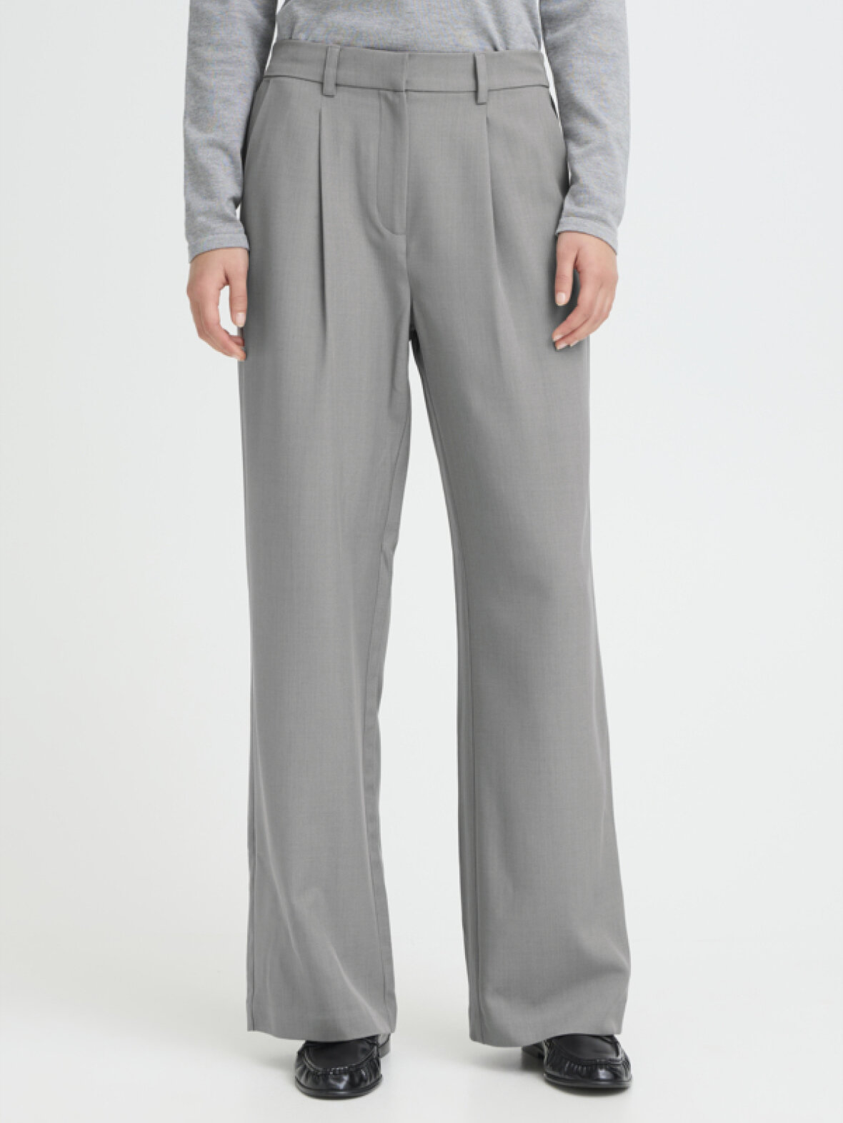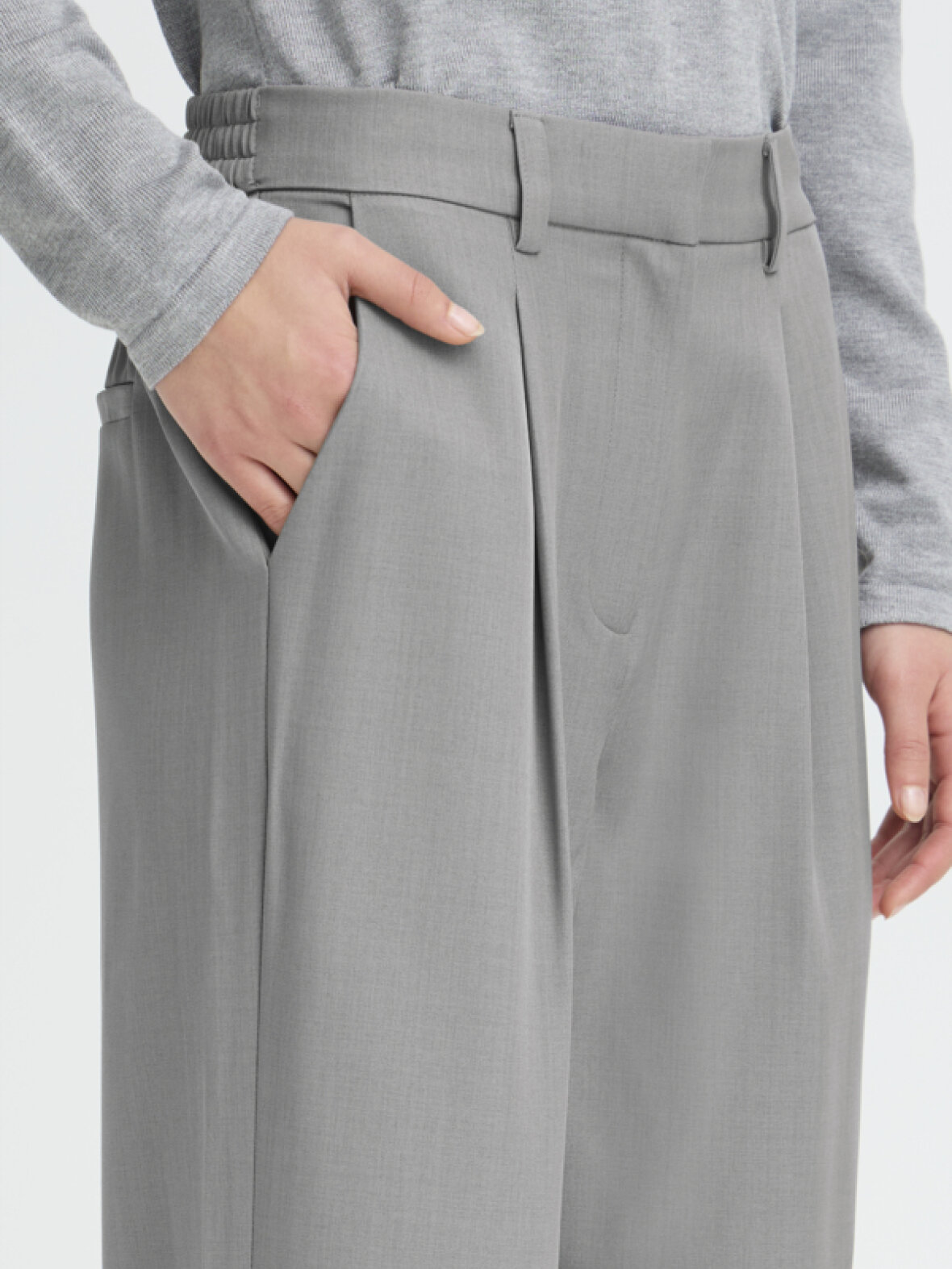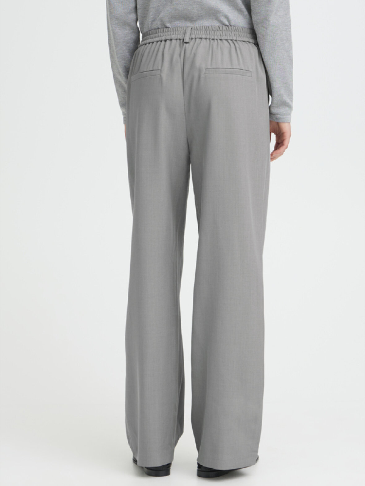 Elegante bukser fra ICHI, med høj talje, vidde ben og elastik bagpå. Super fine både til hverdag og fest.