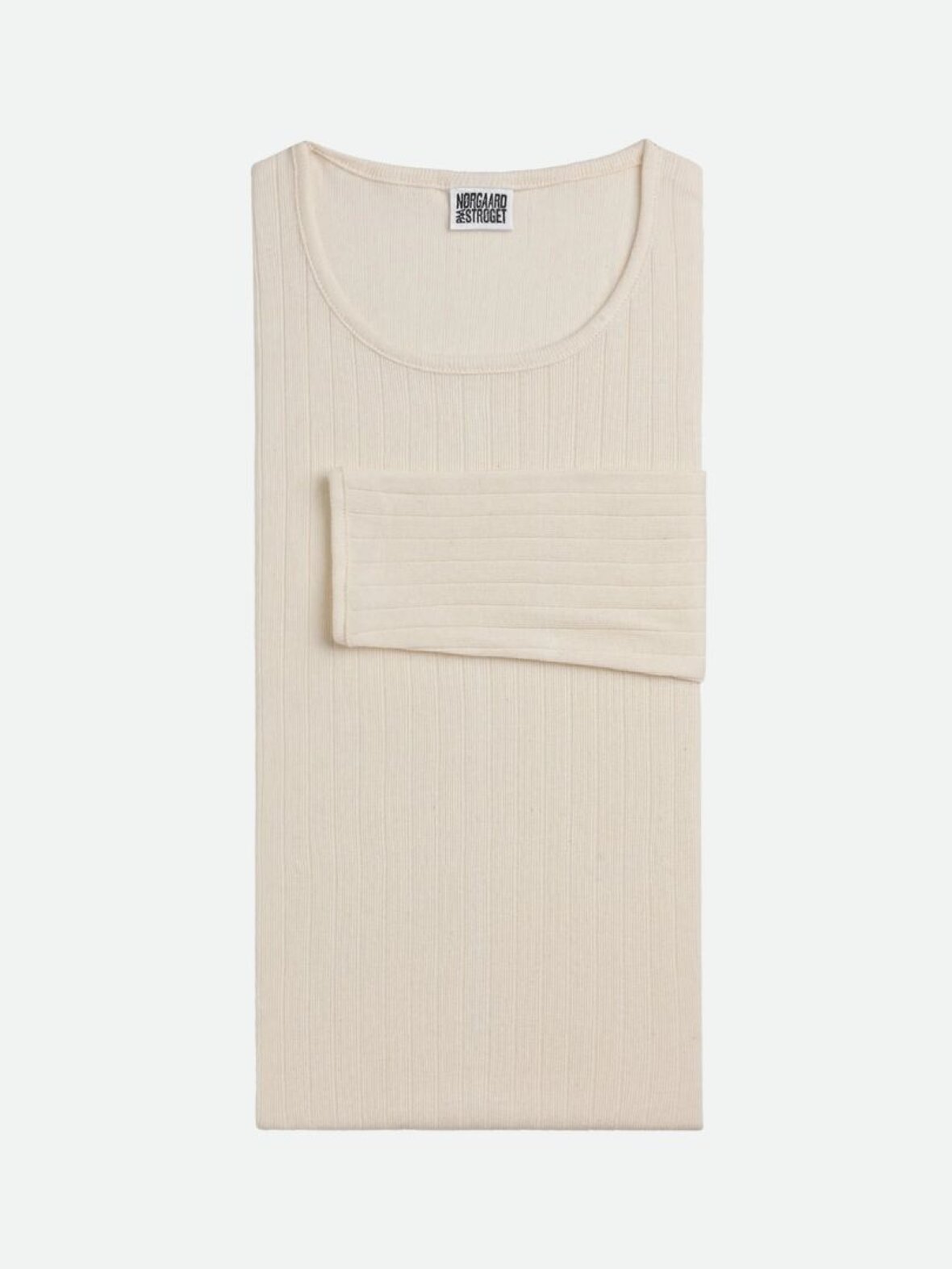 Den populære 101 klassiske basic bluse fra Mads Nørgaard med lange ærmer i creme hvid. Blusen er One size.